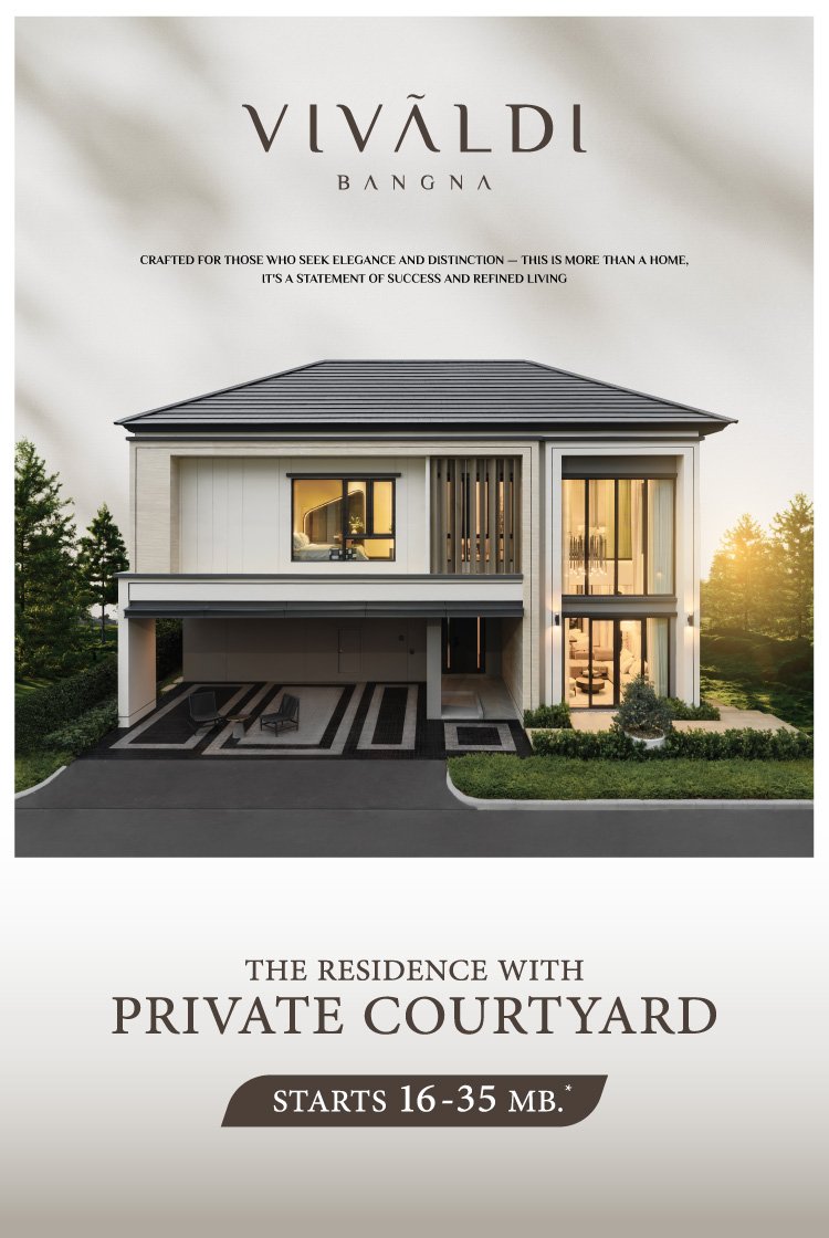 โครงการบ้านหรู บางนา Vivaldi Bangna จาก REAL ASSET ที่มาพร้อมกับคอร์ทยาร์ดส่วนตัว หนึ่งเดียวในย่านบางนา ให้คุณได้สัมผัสกับความเงียบสงบและความเป็นส่วนตัวอย่างแท้จริง โดดเด่นด้วยดีไซน์ที่ทันสมัย พร้อมฟังก์ชันการใช้งานที่ลงตัว และทำเลที่ตั้งที่สะดวกต่อการเดินทางทั้งรถยนต์ส่วนตัวและระบบขนส่งสาธารณะ